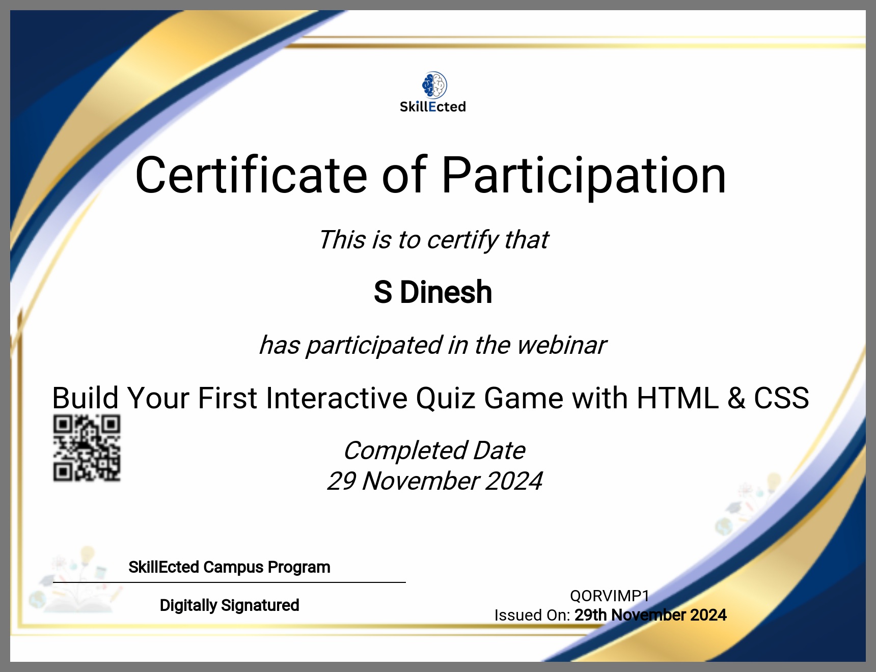 Awarded by NPTEL (IIT Madras) for consistent top performance across multiple NPTEL courses within a discipline.